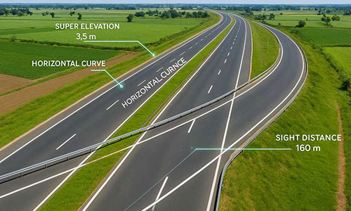 Professional design of highway and road geometry in accordance with national and international standards. Services include horizontal and vertical alignment design, profile development, cross-section preparation, and geometric analysis to ensure safety, efficiency, and long-term performance.